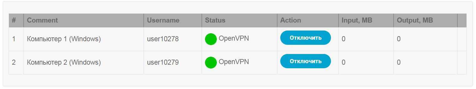 Если так и есть, то имеет смысл посмотреть как оба соединения выглядят на стороне сервера VPNKI. Для этого перейдите в личный кабинет системы VPNKI и выберите пункт меню «Мои настройки» — «Статус подключений».
