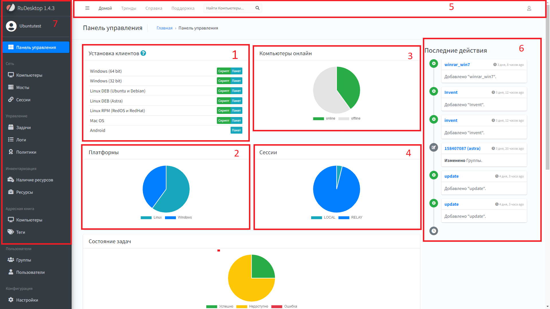 Компьютеры — содержит список устройств, подключенных к серверу.