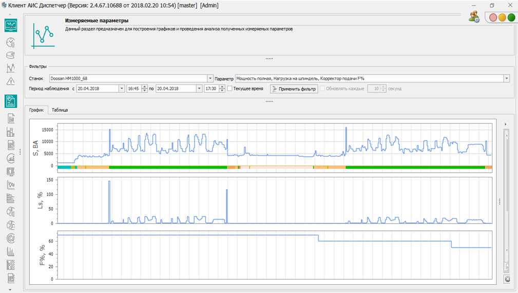 АИС «Диспетчер» предоставляет возможность для станков с ЧПУ получать параметры, характеризующие технологический процесс обработки детали, в том числе производительность и качество.