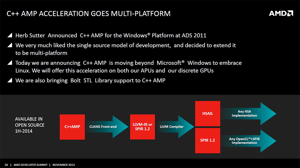 Мы уже говорили о том, что HSA — это открытая платформа. API и спецификации предоставляются разработчиком бесплатно, а сама HSA не зависит от набора инструкций CPU или GPU.