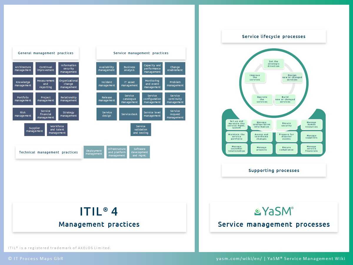 ⇒ Detailed mapping: ITIL V3 and ITIL 4(in our YaSM Service Management Wiki)
