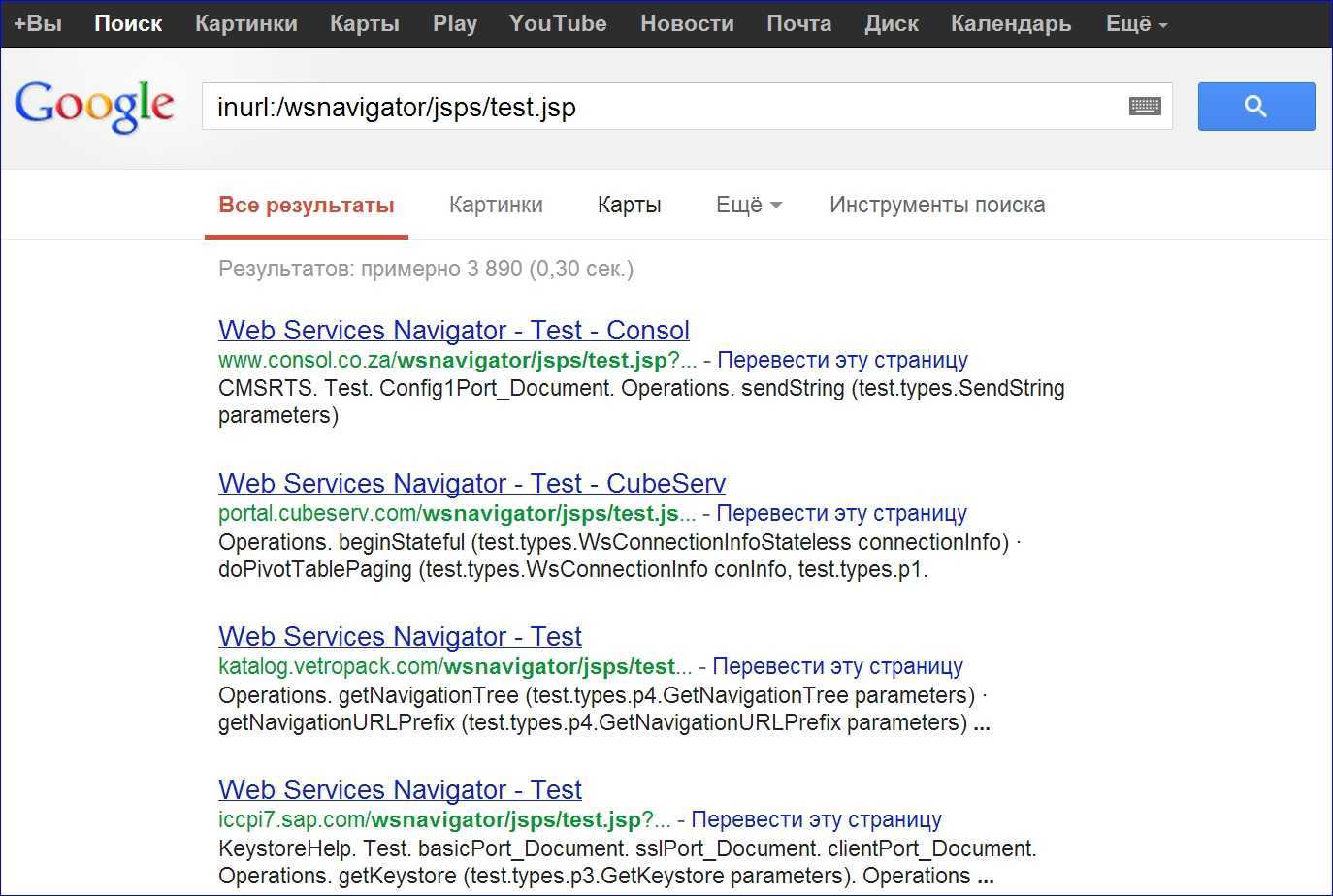Сейчас нет ни одной статьи про какую-нибудь систему, где бы не добавляли ко всему прочему Google Dorks для поиска этих систем в интернете. Поступим так же и мы. Поместив в строку поиска несложное выражение, например inurl:/irj/portal (находит десятки тысяч систем), inurl:/wsnavigator/jsps/test.jsp (находит 2430 записей) или inurl:IciEventServicesap, inurl:IciEventService/IciEventConf, inurl:/irj/go/km/docs/, можно обнаружить SAP-серверы крупнейших мировых компаний, доступные через интернет, ну а теперь перейдем к основным уязвимостям и практике.