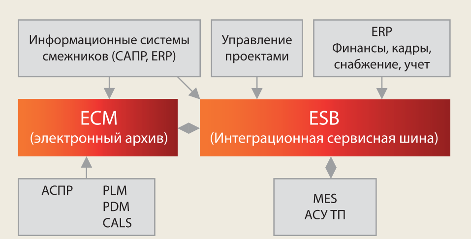 Для многих промышленных предприятий не менее важны документы другого типа — конструкторско-технологических данные (КТД), которые порождаются в САПР и в дальнейшем на их основе возникают другие документы, включая административные. В этом случае связка SOA-платформа + ECM дополняется системой САПР. Это позволяет распространить все преимущества и возможности системы документооборота для работы с такими специфичными документами, как схемы и чертежи.