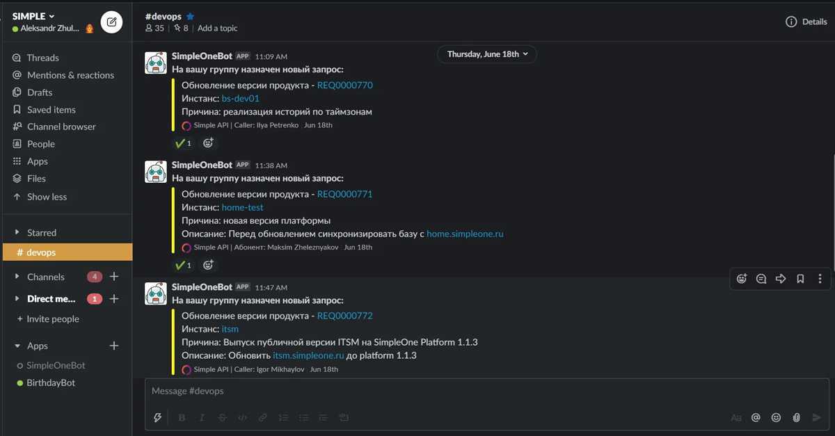 Например, вот так могут выглядеть оповещения об инцидентах в Slack:
