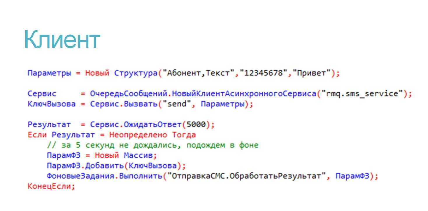 - Создаем объект асинхронного сервиса через подсистему – Сервис.Вызвать().