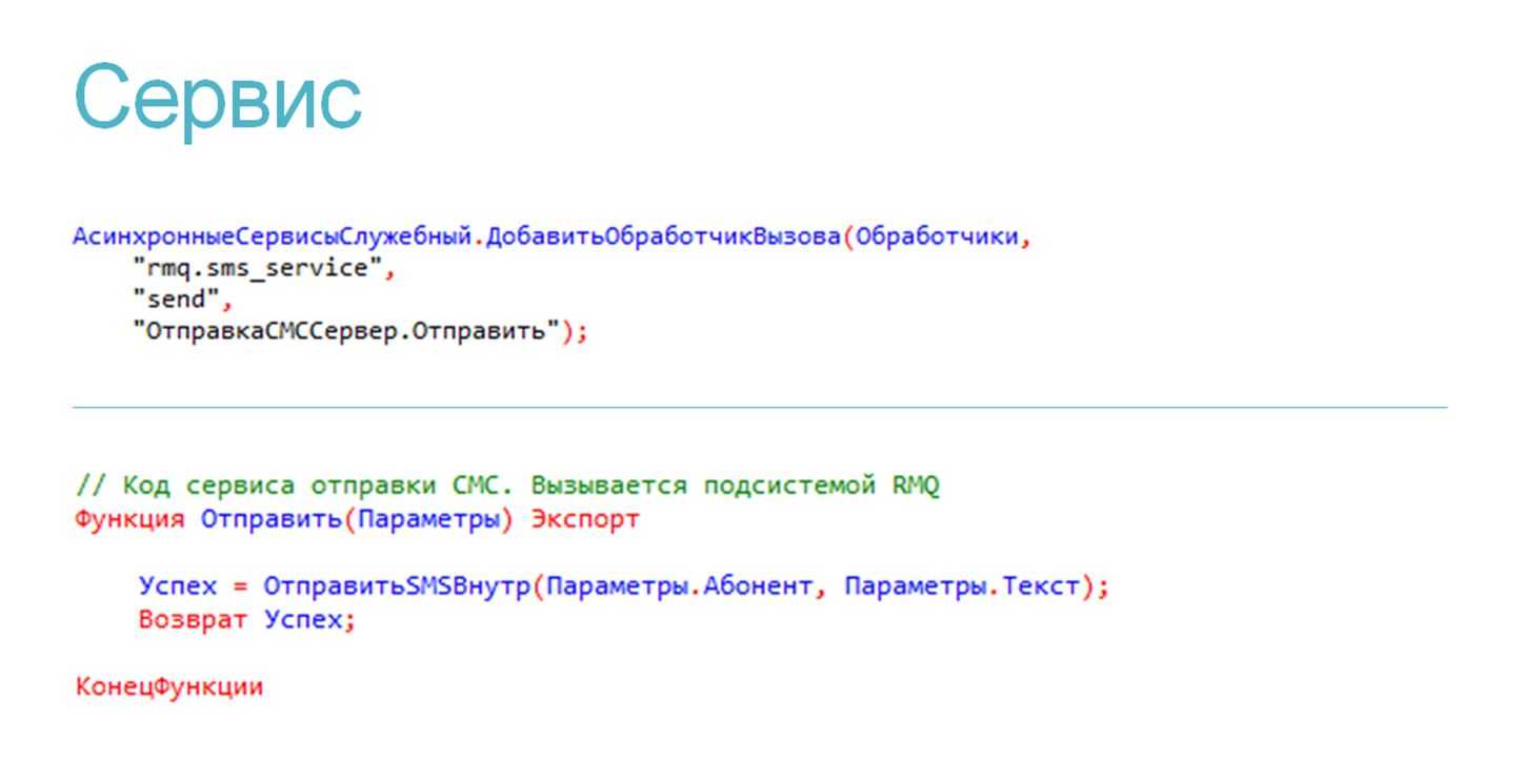 - Во-первых, на стороне сервиса вы точно так же пишете прикладной обработчик, который как-то отправляет SMS. Это ваш прикладной код, который пишет ваш программист.