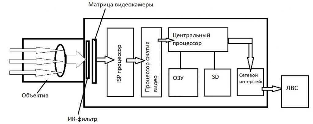 - SoC-процессор (System On Chip) — центральный процессор (ЦП) — «мозг» камеры;