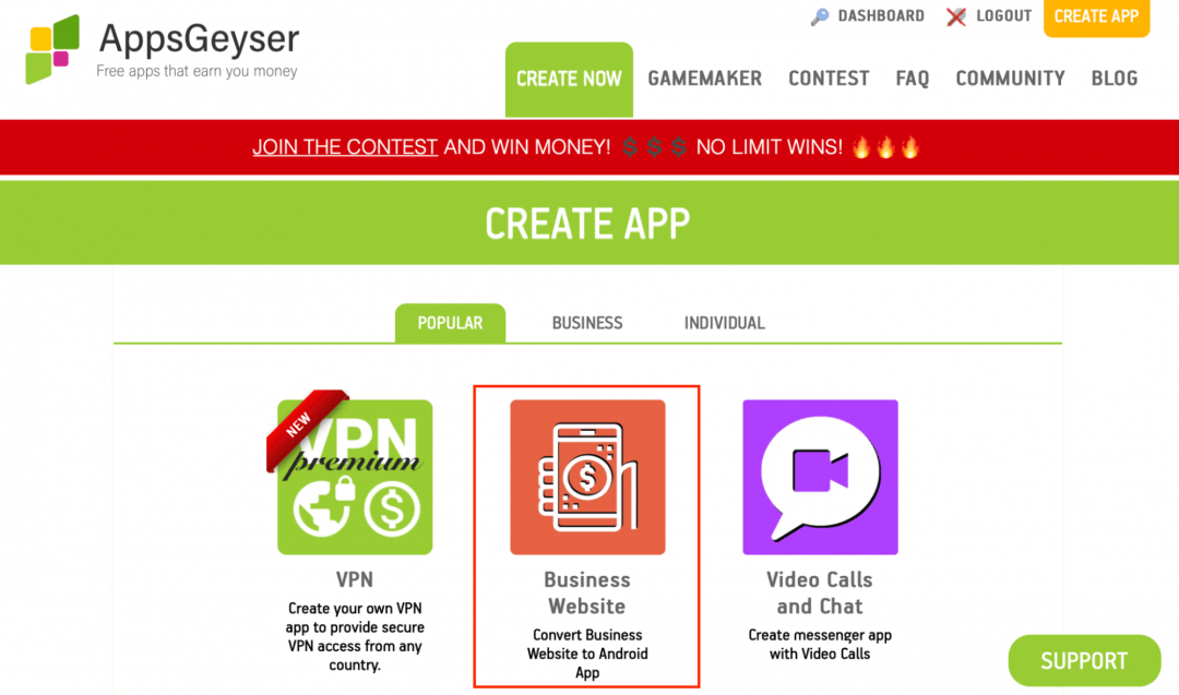 Нам сразу предлагают популярные категории приложений, из которых нам нужно выбрать Business Website — это как раз про перевод страницы в приложение: