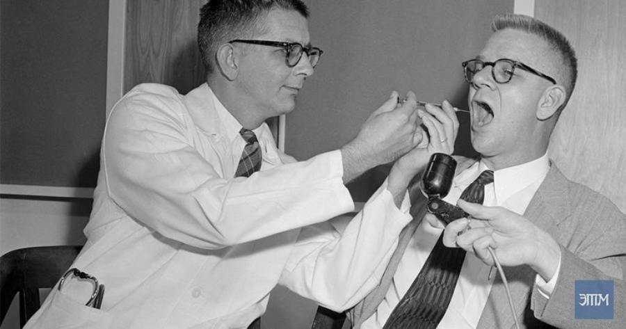 Врач вводит дозу препарата добровольцу во время проекта МК-Ультра. Стюарт Свердлоу утверждает, что он и другие получали такие же дозы в детстве на протяжении всего проекта Монток.