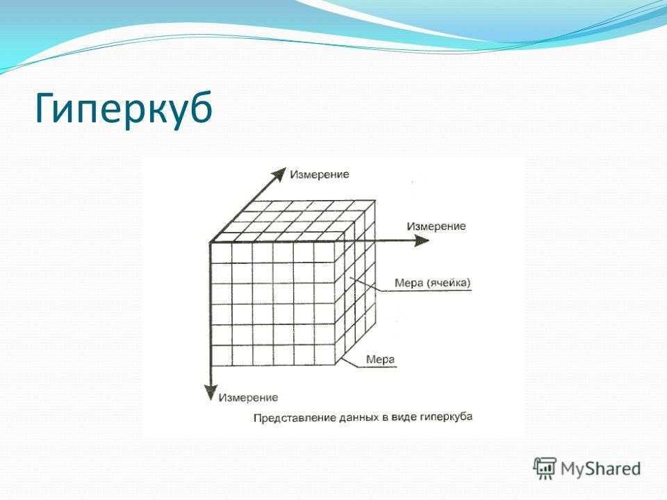 Возможность анализа зависимостей между различными параметрами предполагает возможность представления данных в виде многомерной модели — гиперкуба (рисунок 1), или OLAP-куба.