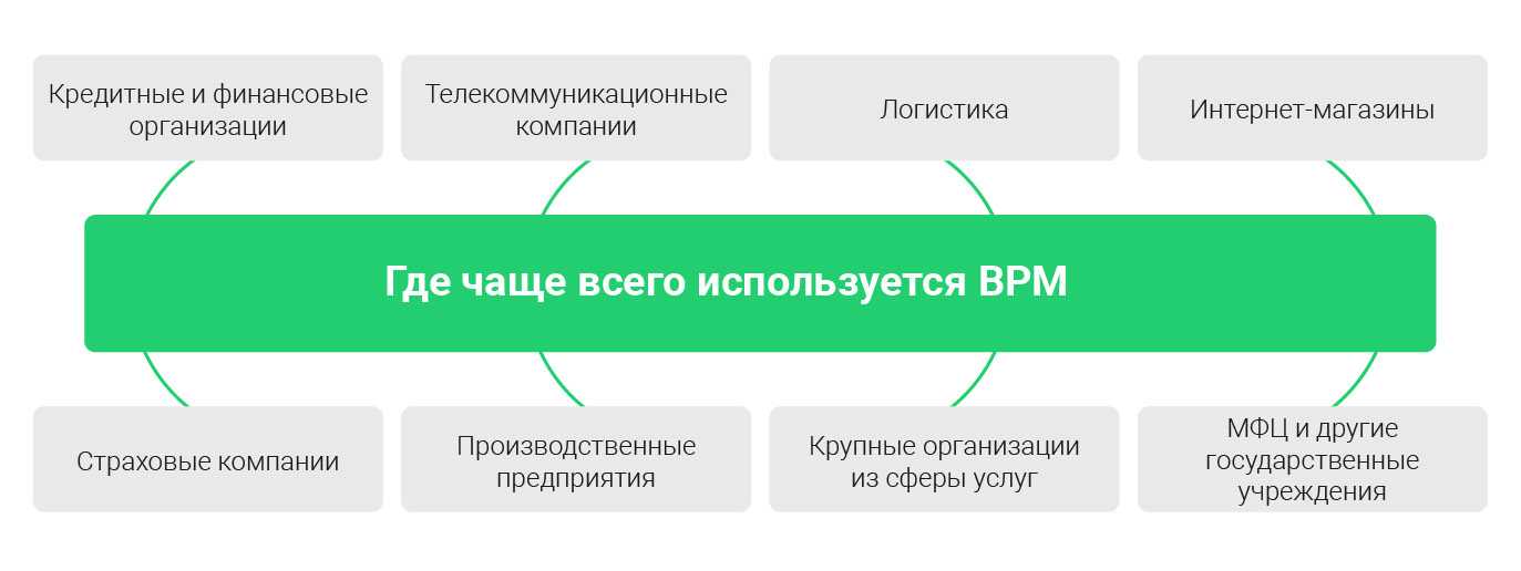 Наиболее часто зарубежные и российские BPM системы используются в организациях, чья работа подразумевает работу с большим объемом входящих заявок и дальнейшим распределением их по различным подразделениям. Кроме того, внедрение оправдано в компаниях с большим числом отделов, выполняющих разнообразные функции.