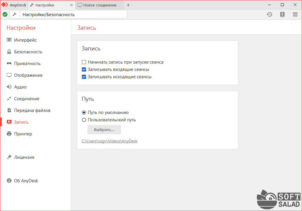 Возможность записи видео с удаленного ПК.