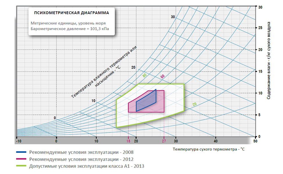 Современное ИТ-оборудование, будучи менее требовательными в отношении гигротермических условий в компьютерном зале, может работать при значительных температурах окружающей среды. При этом эффективность центра обработки данных (PUE) может значительно повыситься.