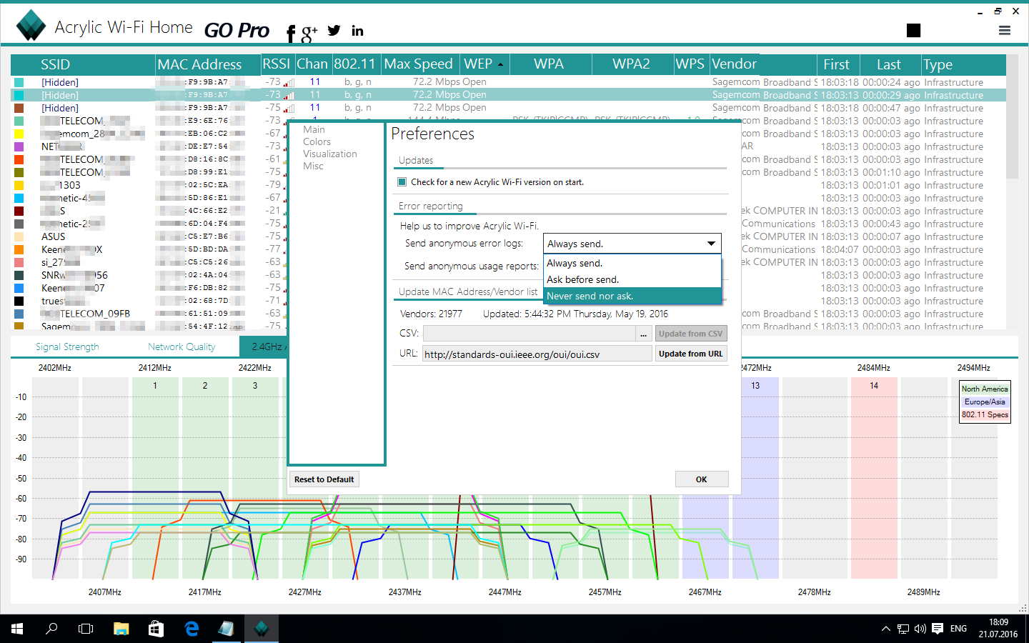 Обновление списка OUI и запрет отправки статистики