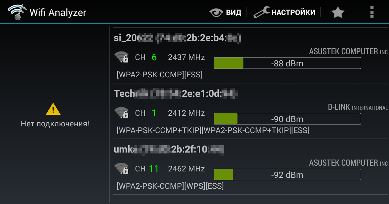 Как я успел убедиться, WiFi Analyzer удобен именно на смартфоне или планшете. Он помогает быстро найти наименее зашумленный канал и узнать уровень сигнала в определенном месте. С его помощью легко проверить настройки безопасности. В частности, можно узнать фактическое состояние опции WPS. Она часто остается включенной, хотя в веб-интерфейсе роутера и показана как неактивная.