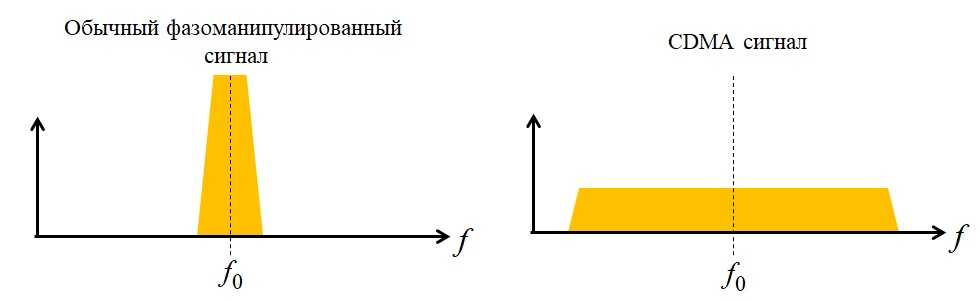 Системы с расширенным спектром более устойчивы к узкополосным помехам по частотно-селективным замираниям. Когда говорим о кодовом разделении каналов, расширение спектра происходит как побочное действие, потому что скорость манипуляции увеличивается.