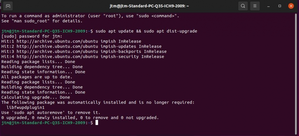 Теперь вы можете закрыть приложение. После этого появится сообщение с предложением ввести пароль, а затем начнётся скачивание обновлений. Когда скачивание закончится, снова зайдите в «Dash» и выберите «Обновление программного обеспечения», чтобы установить все доступные обновления. Также можно воспользоваться командами:
