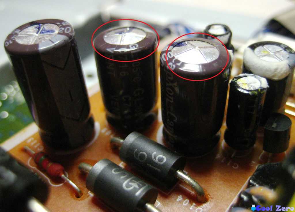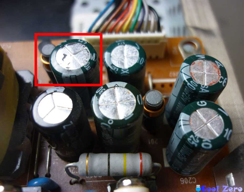 Проблемы с блоком питания возникают из-за вздутых конденсаторов, поэтому для ремонта монитора необходимо снять эти элементы и заменить их на новые детали.