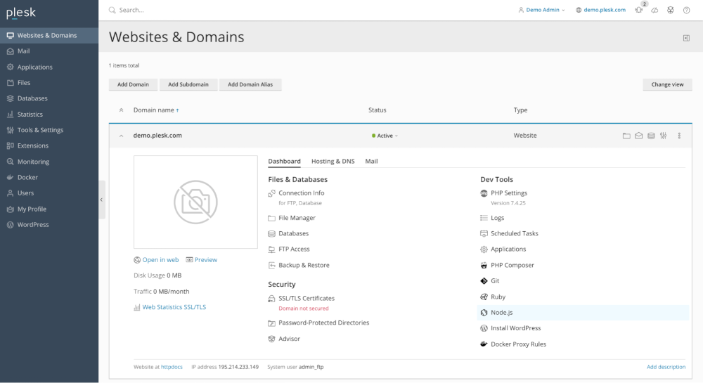 - Независимость от хостов/ОС: Plesk можно устанавливать на широкий спектр операционных систем и практически на любой хост. Если вы используете любую разновидность популярной версии Linux (CentOS, Ubuntu, CloudLinux и пр.) или даже Windows, то можно запустить Plesk. В качестве дополнительного бонуса вы даже можете запустить Plesk внутри контейнера Docker, взятого с Docker Hub. Это сильный козырь, отличающий Plesk от cPanel, которая работает только на CentOS.