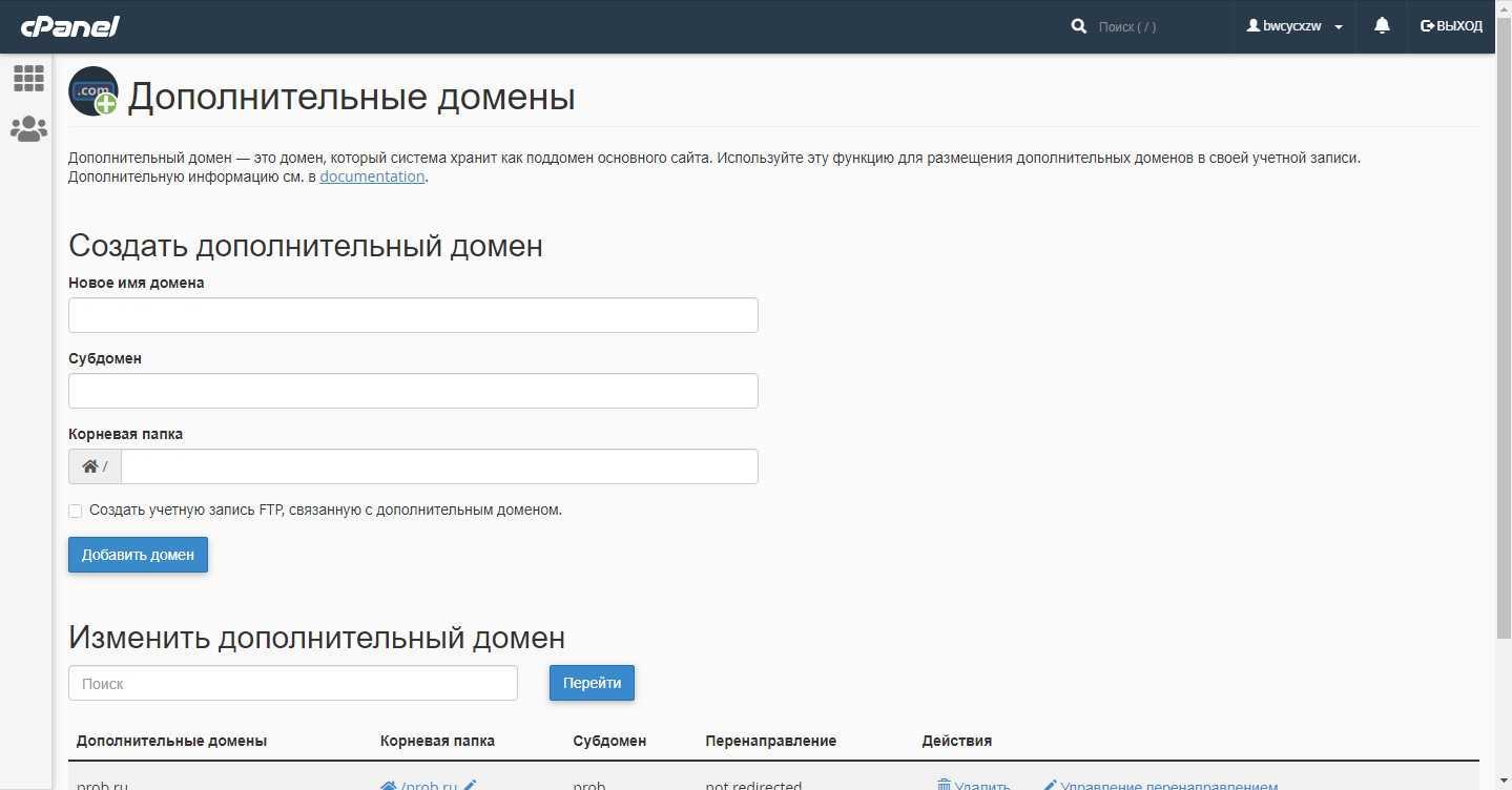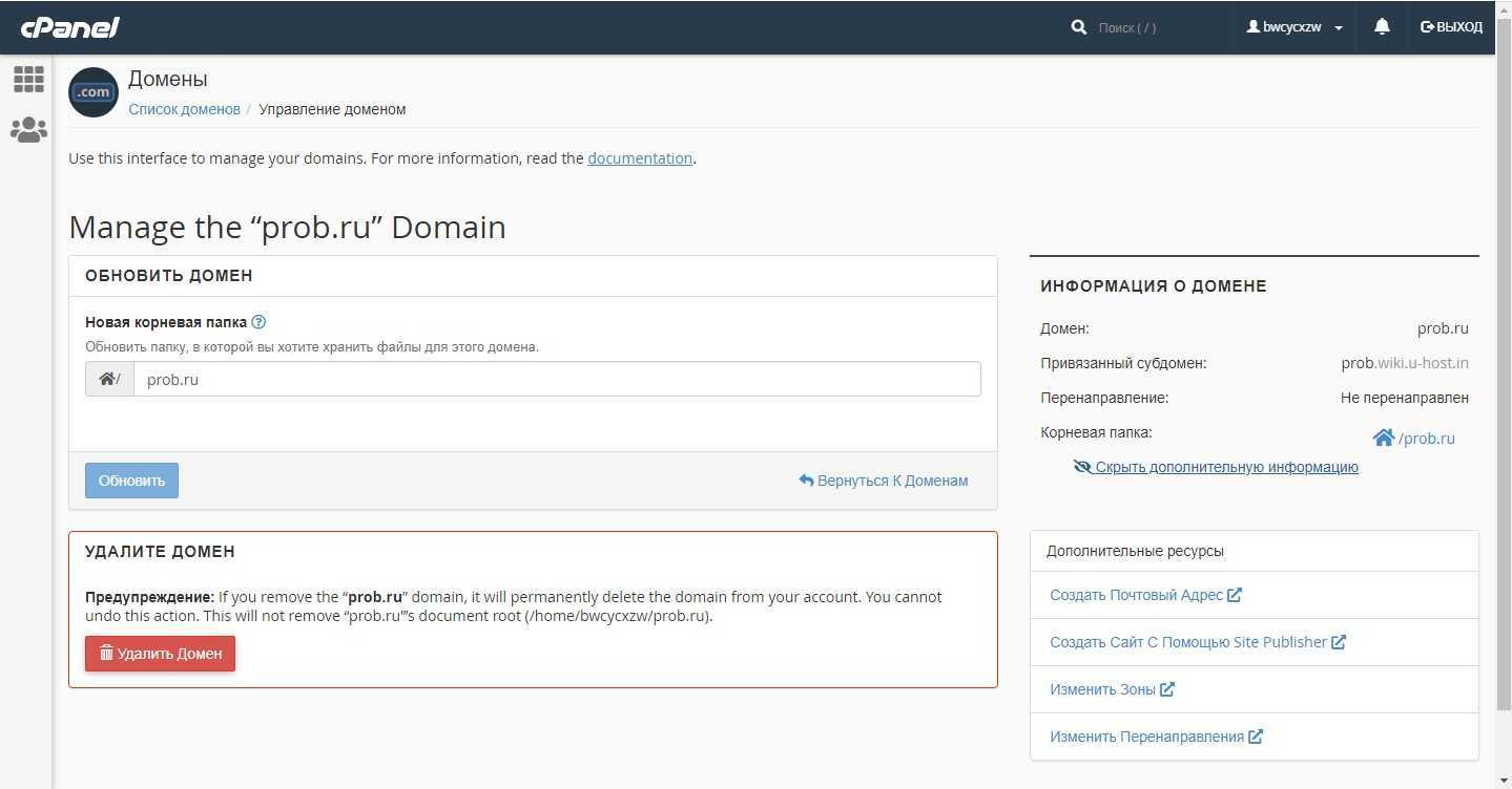 Управление доменами осуществляется в разделы «Домены», «Дополнительные домены», «Субдомены» и «Псевдонимы» – там их можно удалить, обновить информацию. Основной недостаток панели – усложненный процесс работы с доменами. Основной домен нельзя изменить или удалить, а при добавлении дополнительных, панель создает для них поддомены на основном домене.