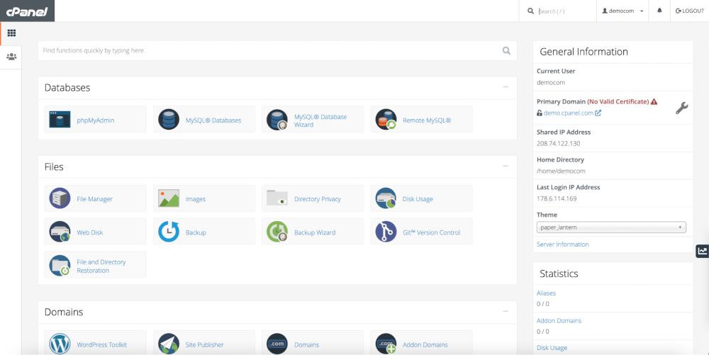 Также cPanel — универсальный и гибкий инструмент за счёт большого количества функций. Все они расположены на одной странице, что довольно удобно, так как вам не нужно нажимать на различные меню, чтобы добраться туда, куда вам нужно.