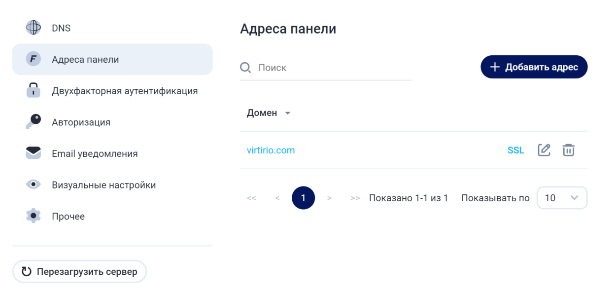 В качестве Адреса панели рекомендуется использовать субдомен. После привязки его А-записи к IP-адресу сервера, следует сгенерировать SSL-сертификат для панели управления.