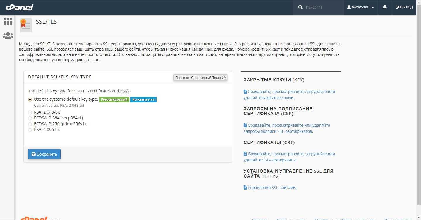 Управлять SSL сертификатами – создавать их, удалять, загружать ключи – можно из раздела «SSL/TLS». Просматривать их статусы – из «SSL/TLS Status».