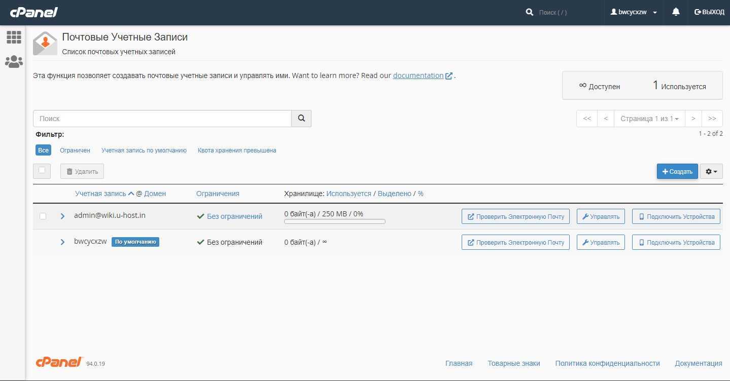 - Пользователь почты — самый низкий уровень, можно войти в интерфейс веб-почты и управлять паролями, фильтрами спама и т. д.