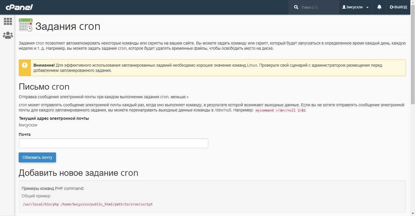 Планировщик задач находится в разделе «Задания Cron» и имеет стандартный функционал.
