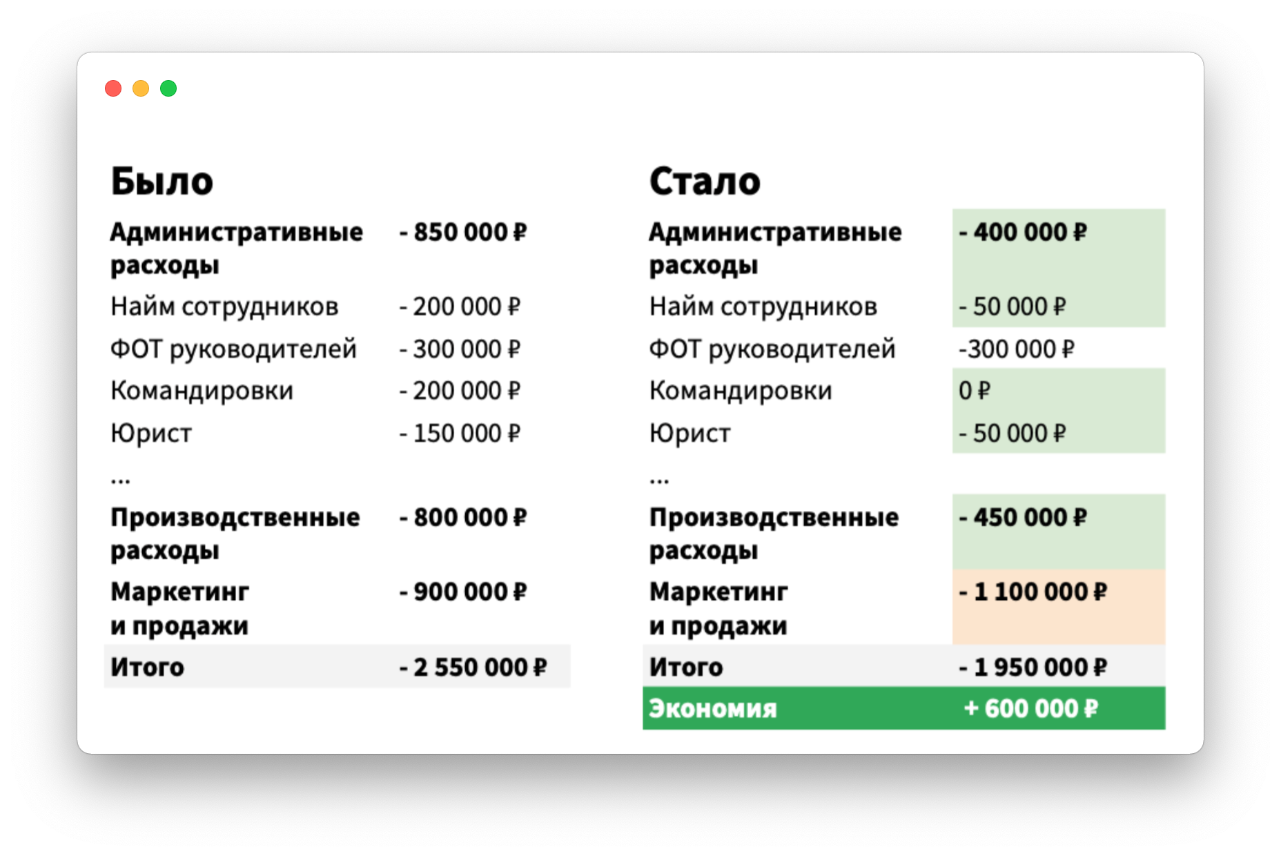 Нужно оценивать каждую строчку расходов и спрашивать себя: расход эффективен? Актуален? Он влияет на компанию глобально? Если сомневаетесь в ответах, советуйтесь с финменеджером или финдиректором.