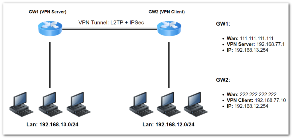 Из схемы мы видим, что Mikrotik в главном офисе (GW1), будет настроен на роль L2TP Server + IPSec, со следующими настройками: