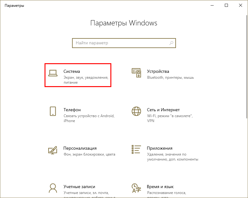 Как зайти в «Параметры», уже указывалось ранее. После следует выбрать самый первый раздел. Выглядит он следующим образом: