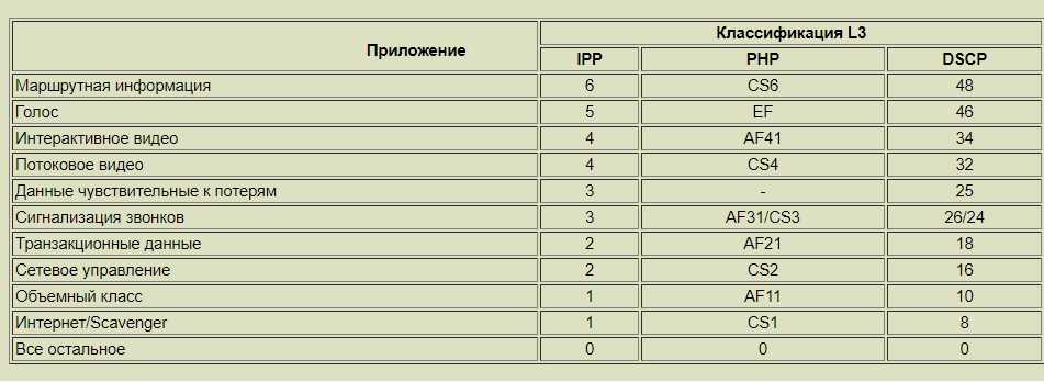 А это уже рекомендованные имена классов и соответствующие значения DSCP: