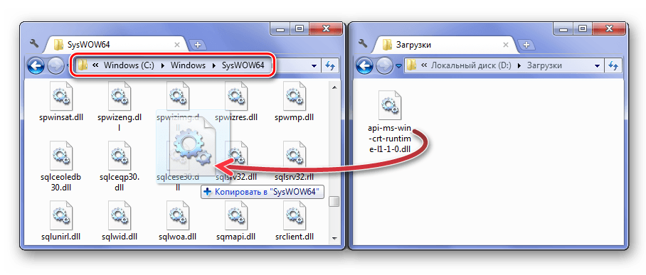 скопировать его сразу в две системные папки System32 и SysWOW64 (находятся в папке Windows на системном диске);