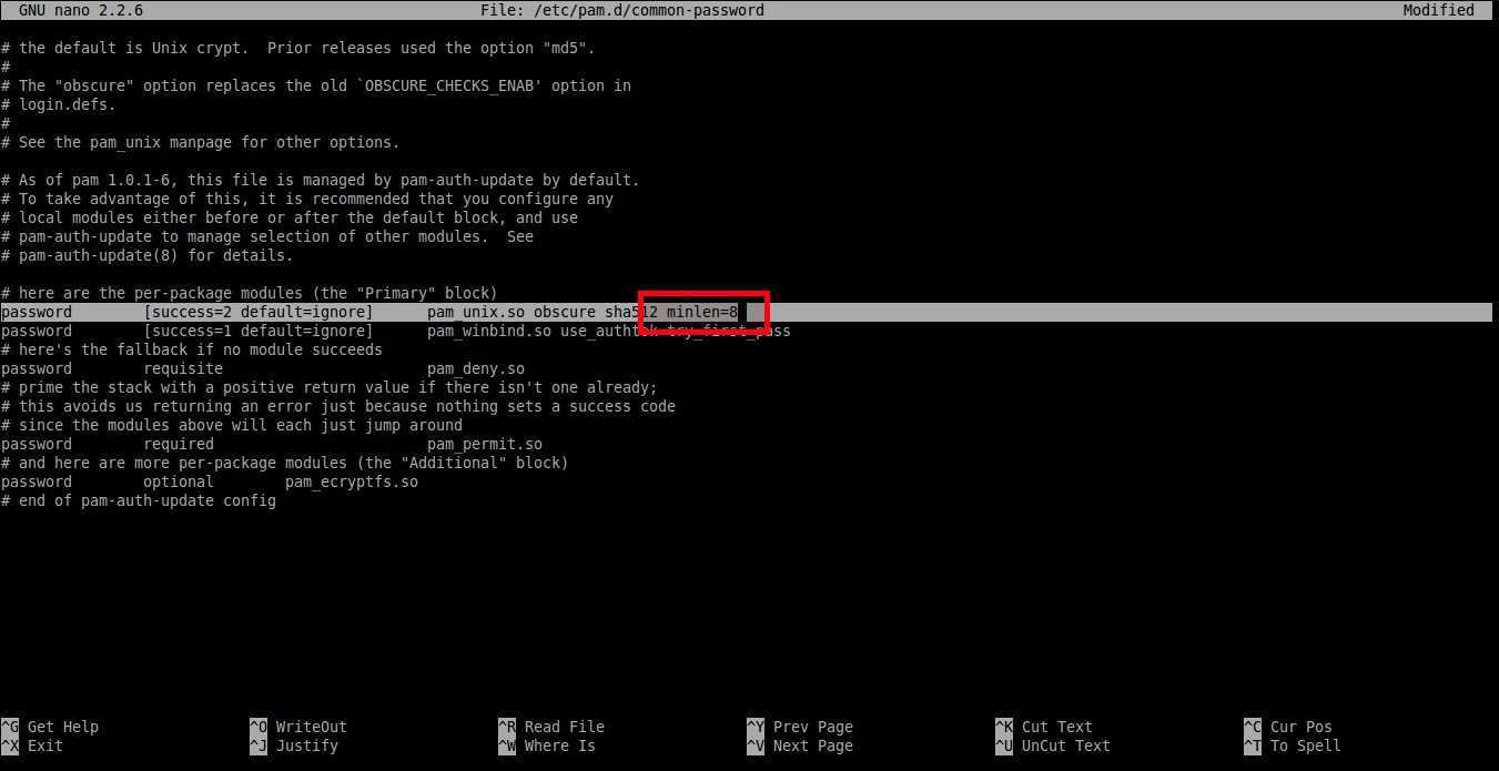 Сохраните и закройте файл. Итак, теперь пользователи не могут использовать менее 8 символов для своего пароля.