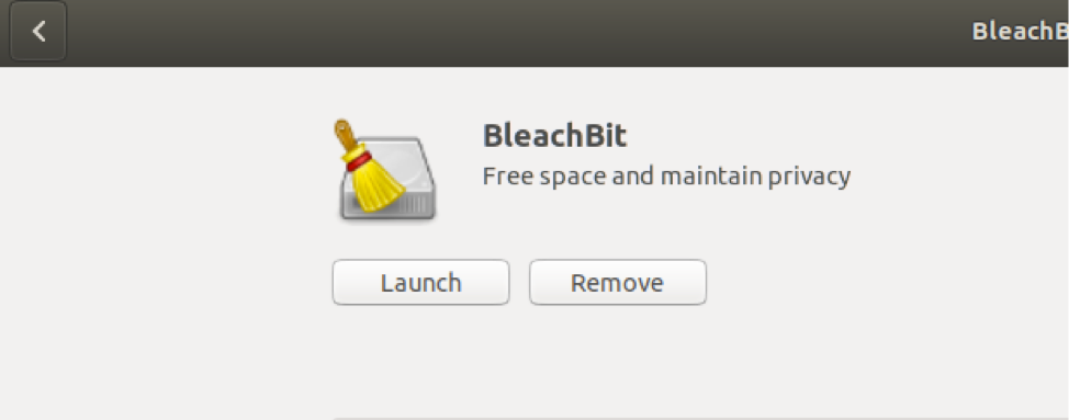 Ubuntu Software Center начнёт установку BleachBit и отобразит небольшой индикатор установки. По завершению установки вы увидите кнопки «Launch» (Запустить) и «Remove» (Удалить).