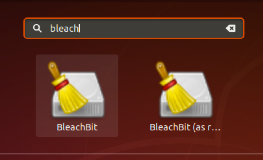 Напишите «bleach» в поле поиска, появятся два варианта: «BleachBit» и «BleachBit (as root)».