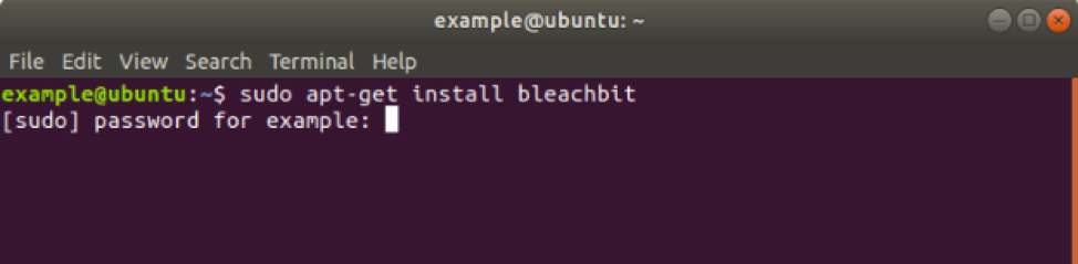 В командной строке напишите «sudo apt-get install bleachbit» и нажмите Enter.