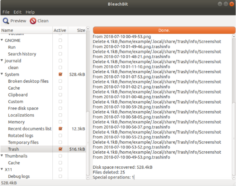 В приложении BleachBit имеются предварительные настройки, способные удалить некоторые из подобных записей. Эти настройки основаны на изысканиях, проведённых авторами BleachBit, в результате которых было определено расположение на вашем компьютере тех записей, которые могут многое рассказать о вашей недавней деятельности за компьютером. Мы опишем использование только двух предварительных настроек, чтобы дать общую картину их работы.