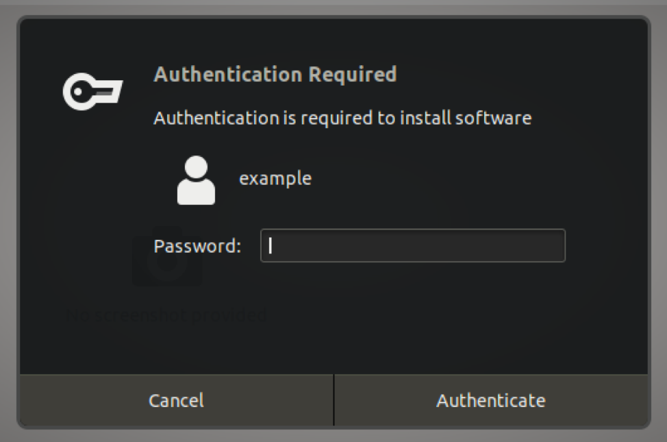Приложение Ubuntu Software запросит у вас пароль для разрешения установки. Введите свой пароль и нажмите на кнопку «Authenticate» (Аутентификация).