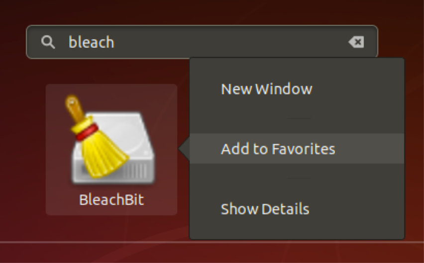 Вы можете установить BleachBit на Ubuntu, используя приложение Ubuntu Software. Если оно находится в избранных приложениях, то вы можете нажать мышкой в левом краю экрана.