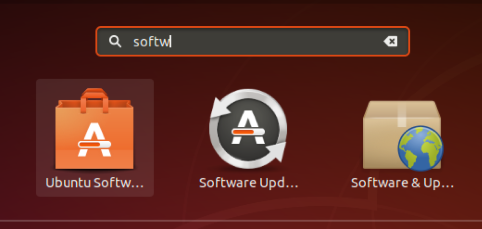Напишите “software” в поле поиска и нажмите на иконку Ubuntu Software.