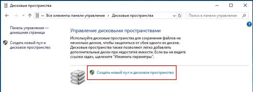 Зайдите в панель управления, запустите апплет «Дисковые пространства».