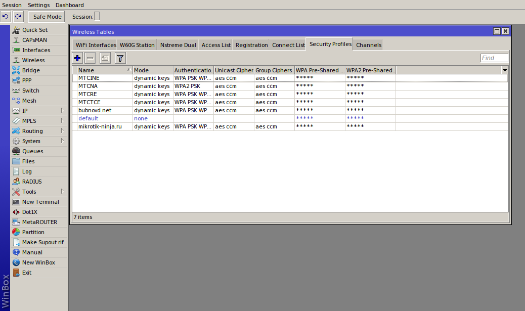 На группе настроек sensitive остановимся чуть подробнее. В RouterOS определены так называемые чувствительные данные. К ним относятся ключи Wi-Fi, IPSec, SNMP, пароли VPN-интерфейсов и серверов, пароли протоколов маршрутизации и , влияющая на безопасность.