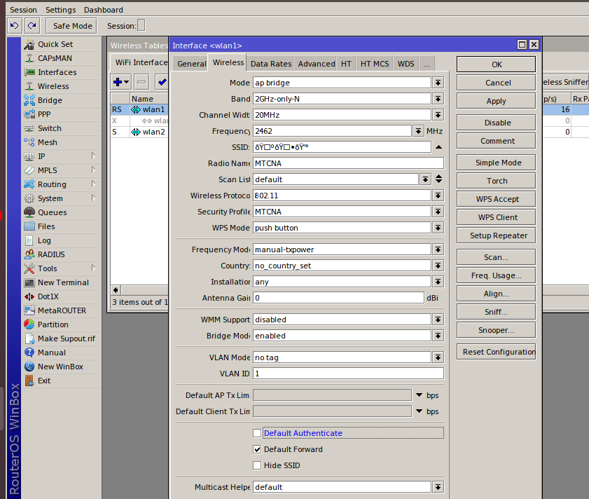 А еще MikroTik умеет делать SSID в виде эмодзи, например так: ???. Для этого нужно перевести символы в Unicode с помощью инструмента вроде такого и вставить полученную строку в SSID.