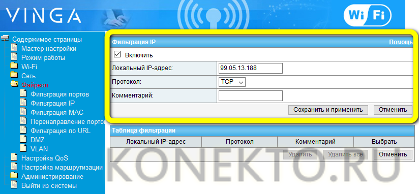 Включить фильтрацию IP-, DNS-адресов и отдельных портов, необходимую для отсечения опасного или нежелательного трафика.