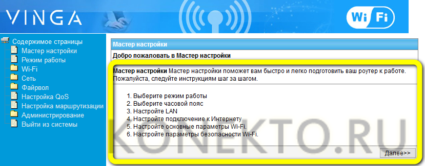 Запускает мастер быстрых настроек для первичного подключения и, следуя инструкциям системы, заполняет поля и выбирает опции в выпадающих списках.