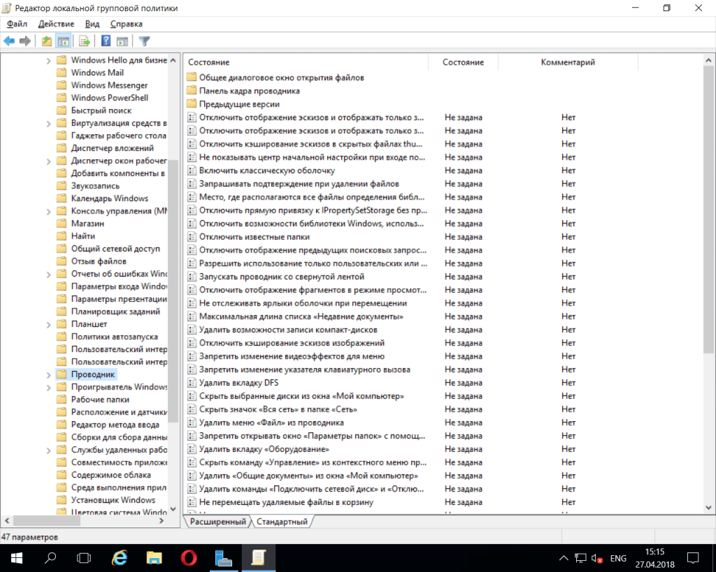 Откройте редактор групповой политики (команда gpedit.msc) и перейдите в раздел Конфигурация пользователя, Административные шаблоны, Компоненты Windows, Проводник (рис. 1.).