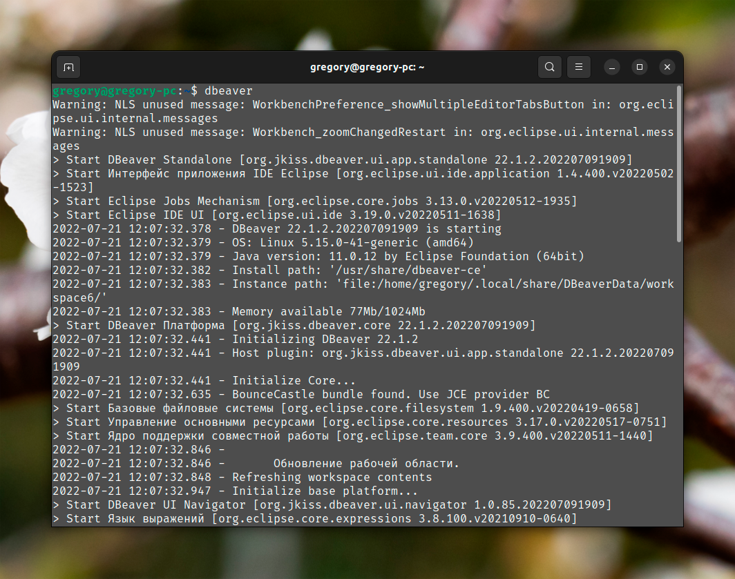 Программу DBeaver можно запустить из меню всех приложений Ubuntu или командой: