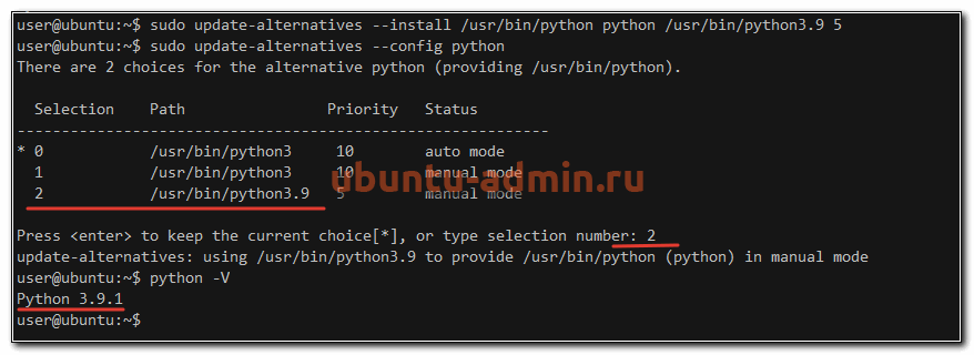 В описанных выше разделах мы установили как минимум 2 разные версии python3 — 3.8.5 и 3.9.1. Давайте теперь разберемся, какая их них будет выбираться по умолчанию.